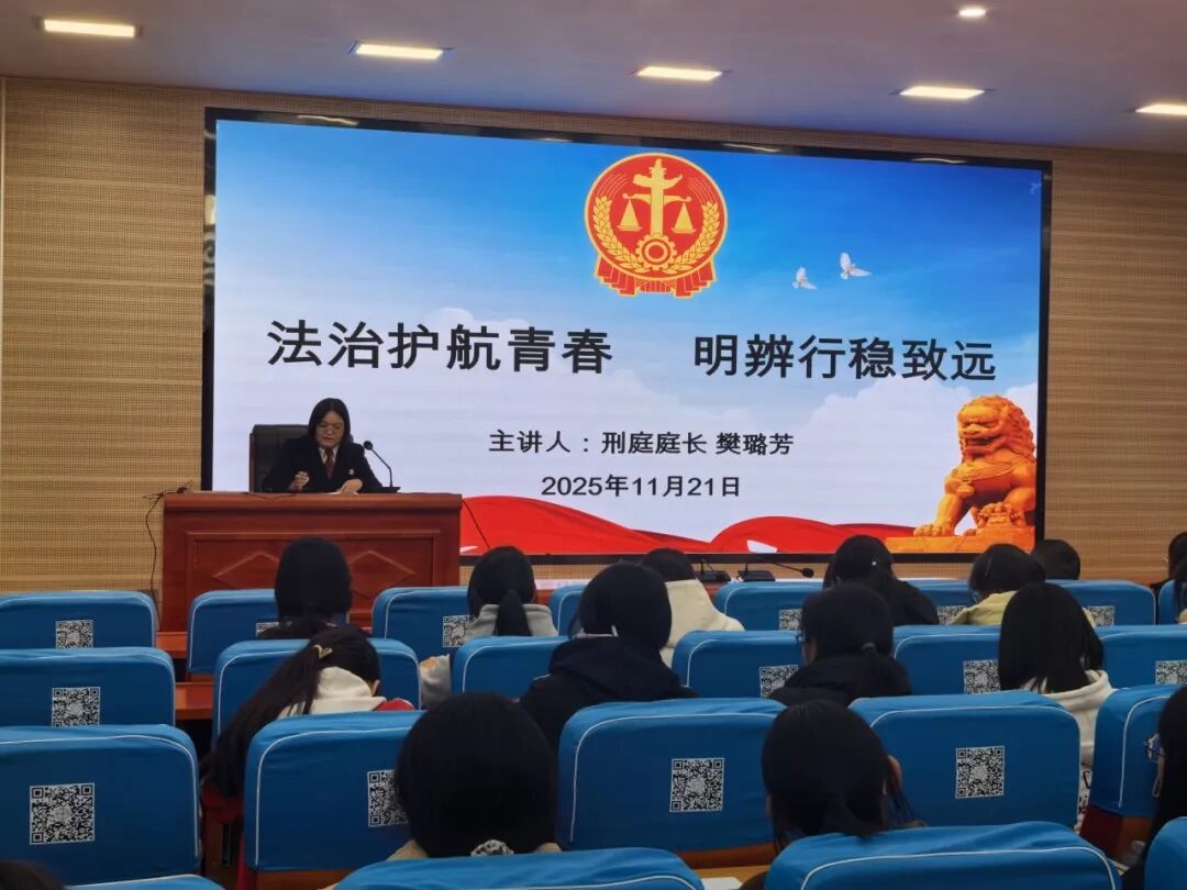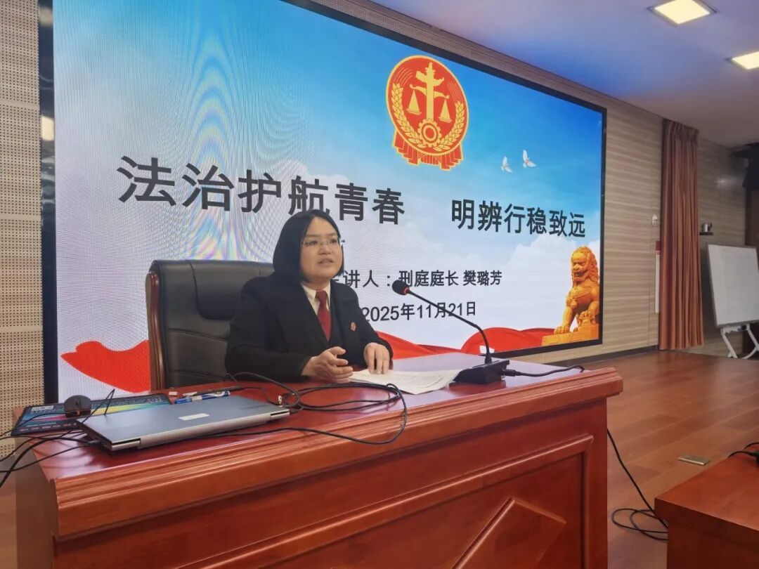 随后,宣威市人民法院刑庭庭长樊璐芳作“法治护航青春、明辨行稳致远”主题讲座,结合《中华人民共和国民法典》案例,深入讲解未成年人权益保护与校园纠纷解决机制,进一步激发了学生的学法热情,为构建法治校园注入新动力。