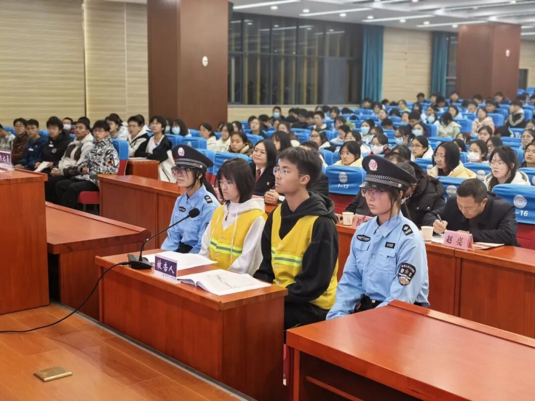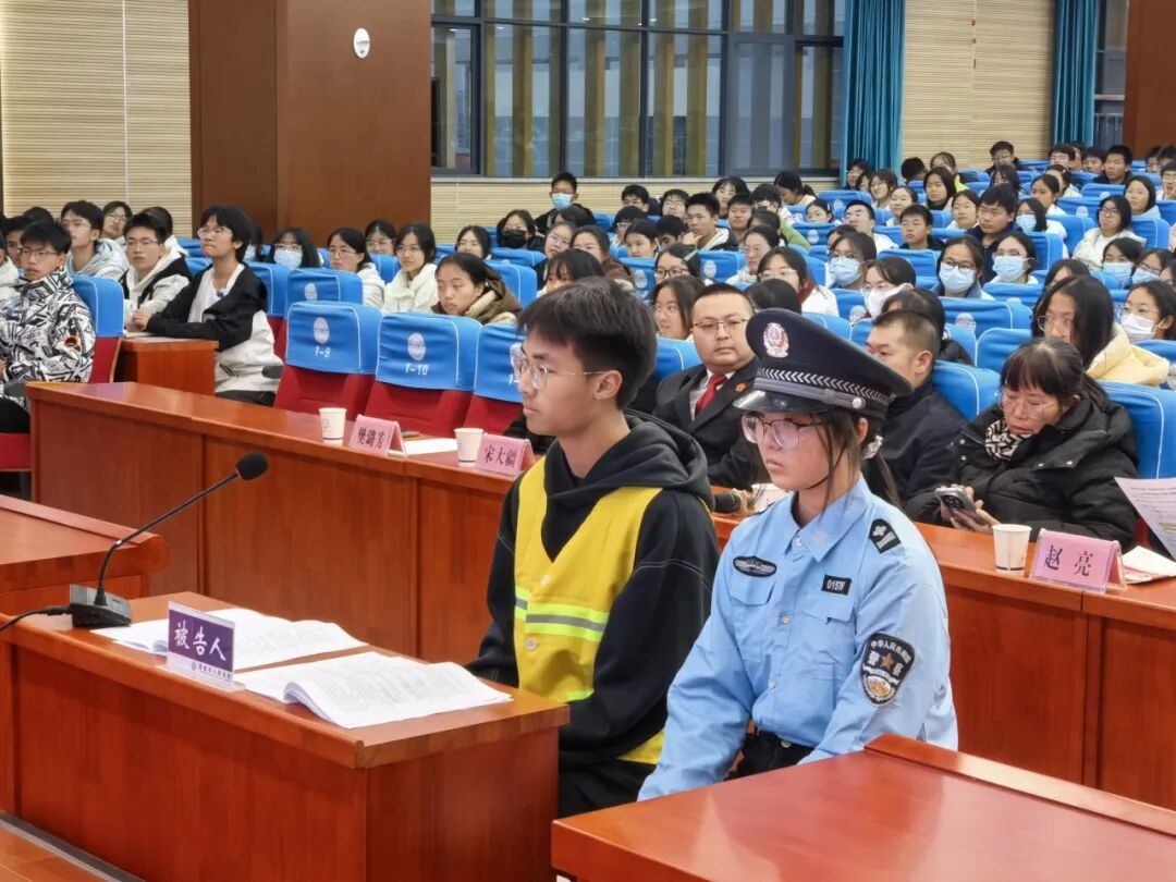 角色演绎到位:各岗位学生全情投入,“审判长”沉稳掌控节奏,“书记员”认真记录,“法警”维持秩序,高度还原了司法实践的严肃性与规范性。
