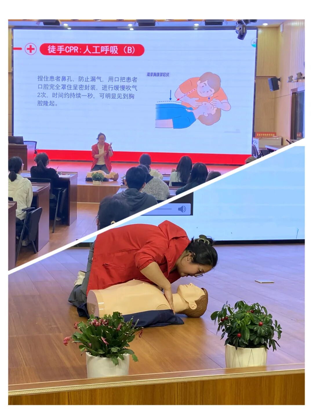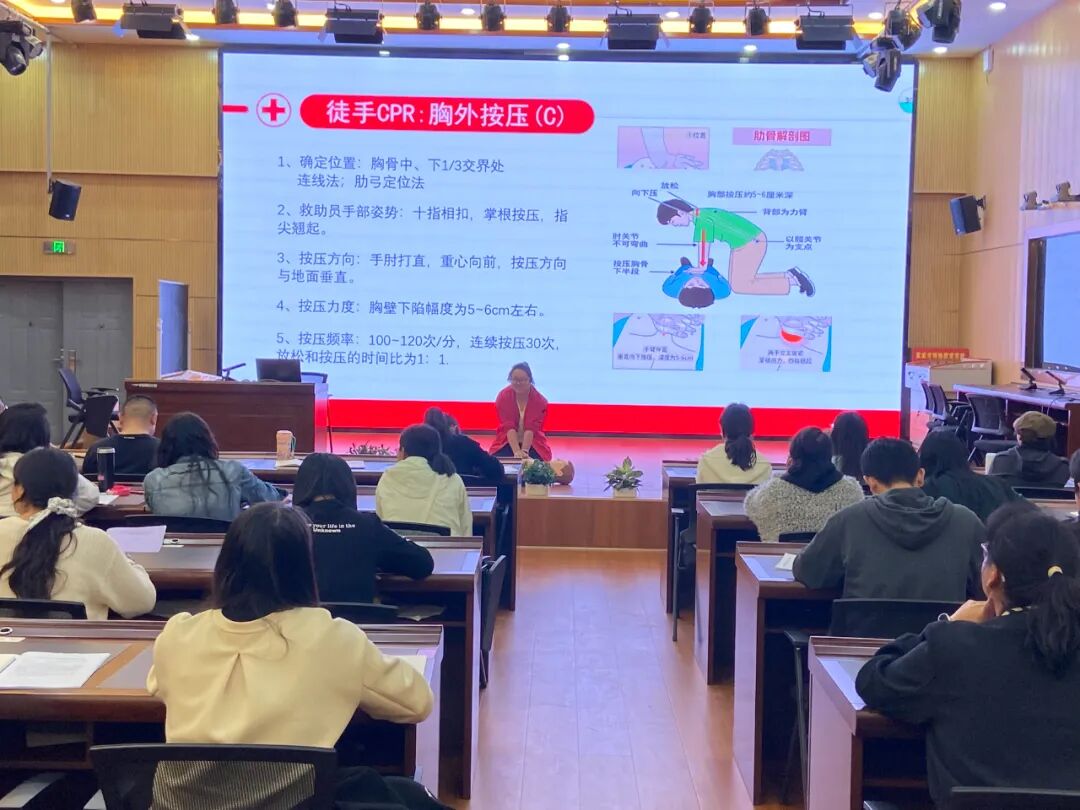 培训结合特殊教育学校学生身心发展存在差异、感知能力不足、自我保护意识薄弱、行为自控力较弱等特点,针对其更容易发生的摔倒磕碰、异物卡喉、突发疾病、意外伤害等紧急状况,围绕六大高频校园急救场景展开系统讲解。具体内容包括:心肺复苏(CPR)、创面包扎处理、癫痫发作应急处置、气道异物梗阻急救、流鼻血紧急处理、烫伤应急救护。培训兼顾理论讲解与实操演示,内容紧密贴合特教校园真实突发情况,具有较强的针对性和实用性。